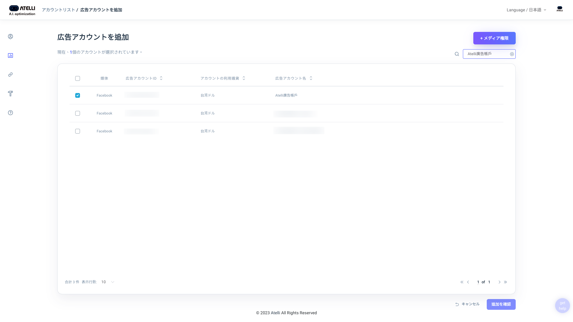 項目 | Atelli AI | 競合/A社 | 広告代理店 |